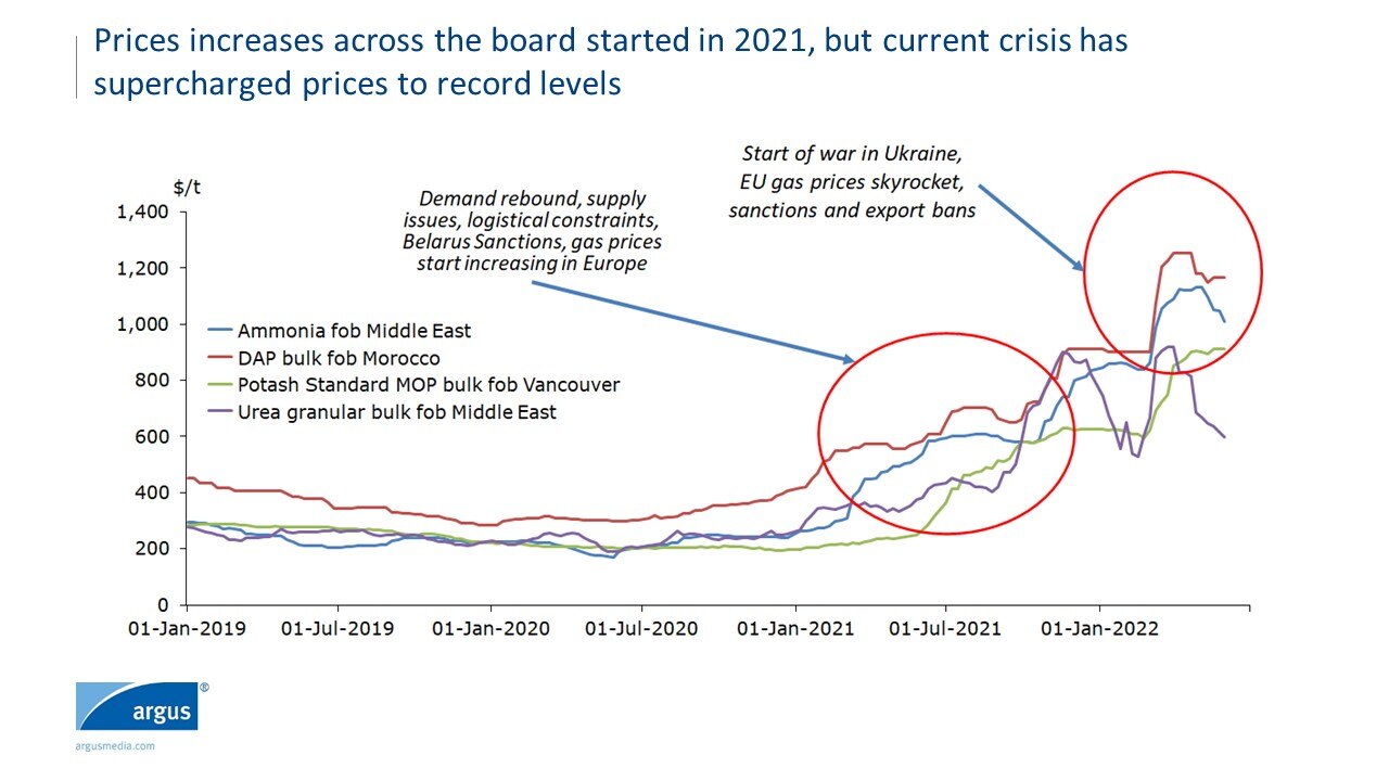 Fertiliser prices have been on the rise. (Credit: Argus Media)