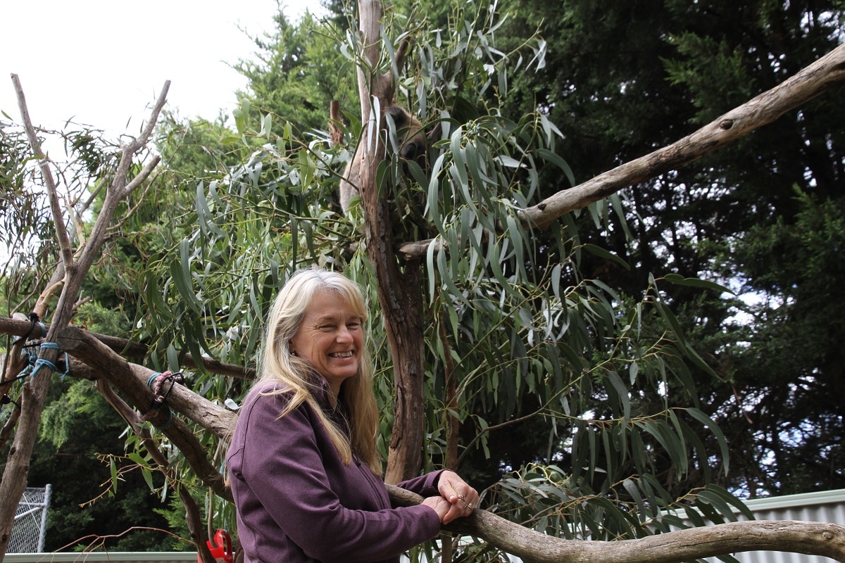 At her south-west Victorian wildlife sanctuary, Tracey Wilson is surrounded by koalas.
