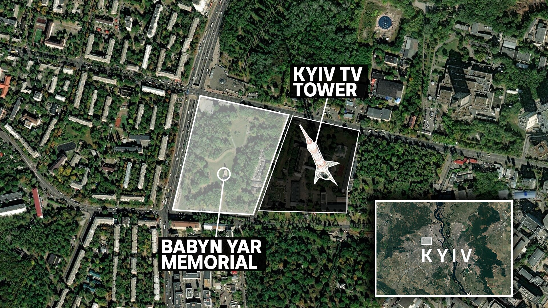The Ukrainian Foreign Ministry has called Russia barbaric for launching a missile strike on a TV tower next to a memorial commemorating the victims of one of the biggest single massacres of Jews by Nazi Germany.