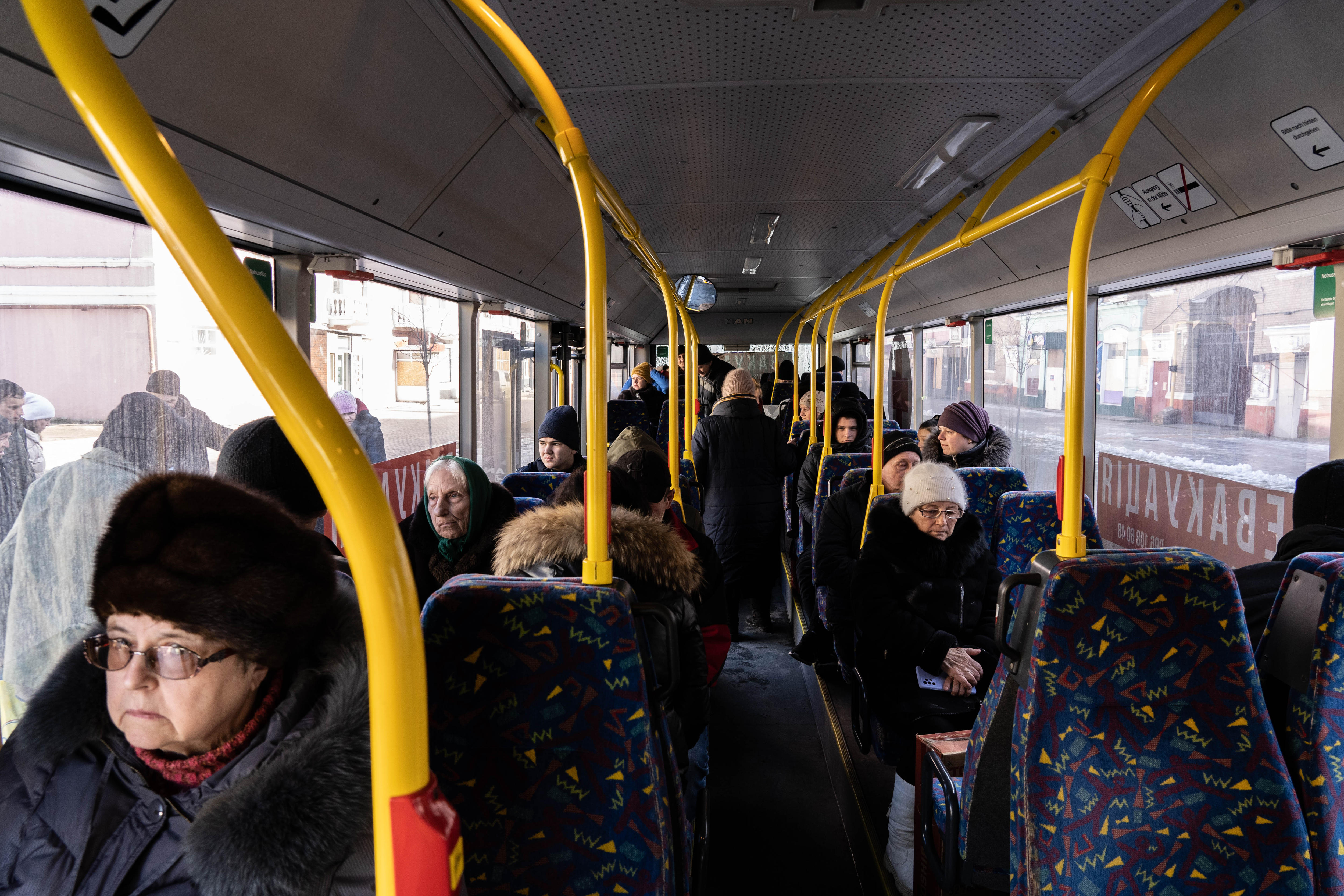 Others on this evacuation bus outside the Kramatorsk aid centre have been on a days-long journey just to get here.