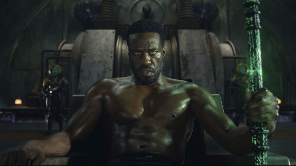 That’s where the A-man’s archnemesis, David Kane, aka Black Manta (Yahya Abdul-Mateen II) comes in. As you might or might not recall, Aquaman killed Kane’s father in the original film and damaged Black Manta’s red-helmeted suit, and Kane is hell-bent on exploring the depths of the oceans in search of technology that will give him back his powers and then some. Making proclamations along the lines of, “I’m going to kill his family and burn his kingdom to ash,” Kane has assembled a small army of henchmen and henchwomen and has enlisted the services of Dr. Stephen Shin (Randall Park), the obligatory marine biologist who’s in it for the science and only realizes very late in the game that he’s partnered with, you know, a megalomaniac whose goal is to get revenge on Aquaman and in the process destroy all forms of life in the world above.