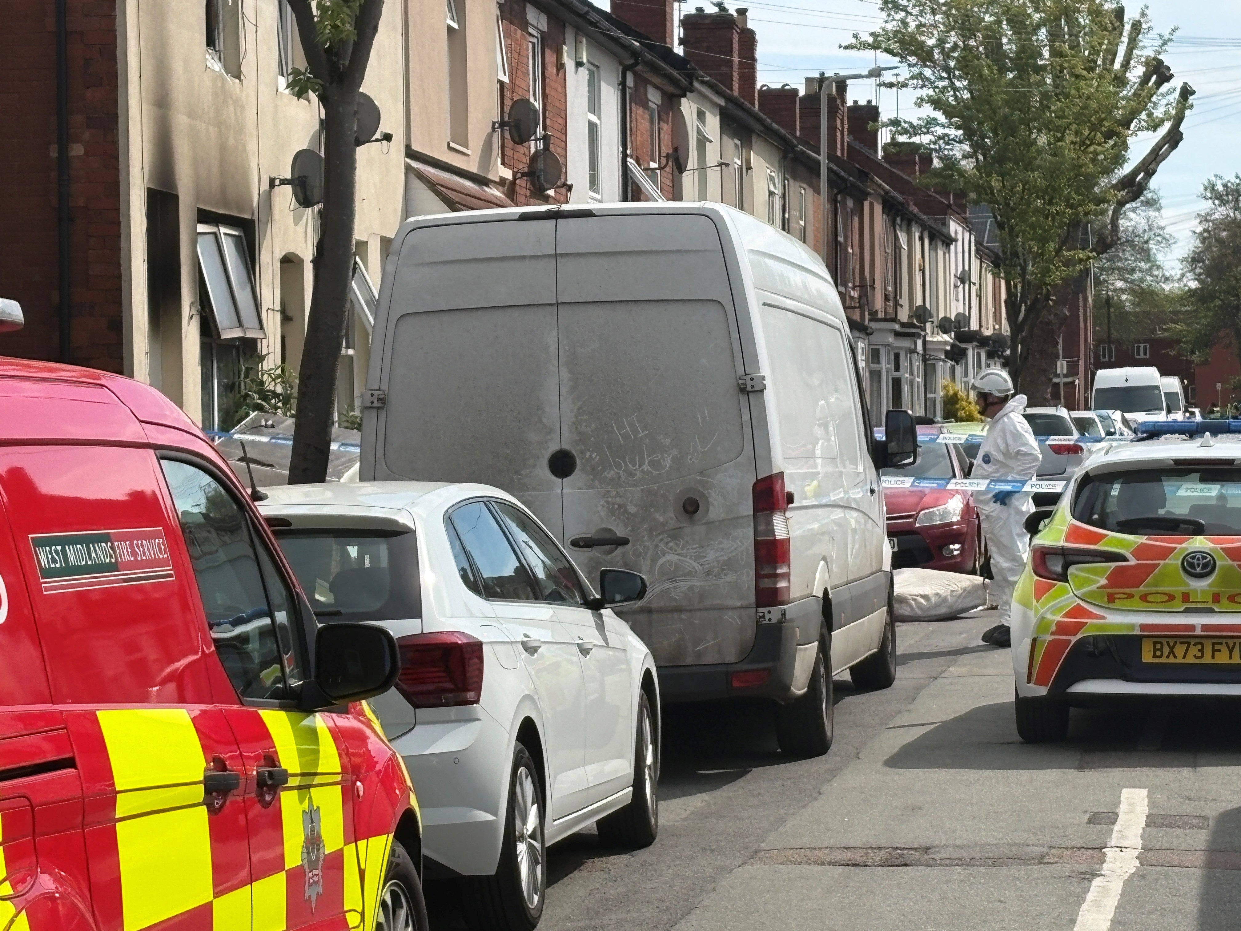 The scene at a house in Wolverhampton after two young children died in a fire (Matthew Cooper/PA) - (PA Wire)