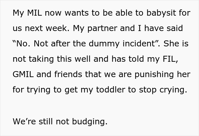Much to the parents’ dismay, however, it all changed when OP’s mother-in-law babysat the toddler for just four hours. Apparently, the kid started crying, and the woman didn’t know how to stop it, so she shoved a pacifier in their mouth. To say that the couple was furious is an understatement because the child got back into an old, unhealthy habit.
