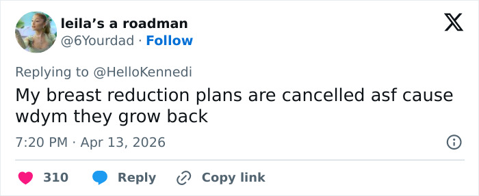 “My breast reduction plans are cancelled asf, cause what do you mean they grow back?” commented a fourth.