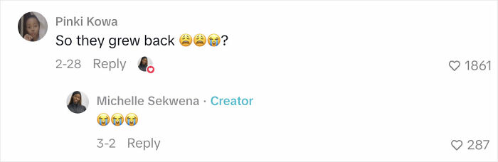 While some speculated that Sekwena was posting “pre-recorded videos” on her social media, others did not hesitate to conclude, “they regrew.”