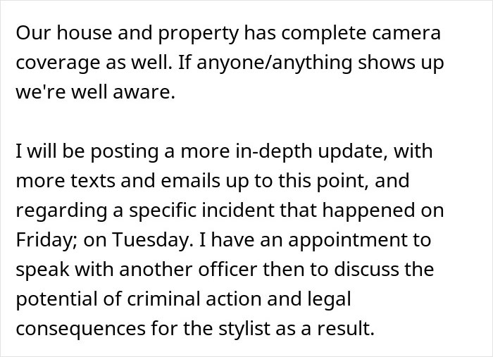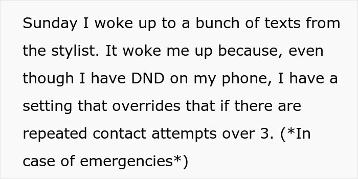 The hairstylist’s behavior continued to worry her, as she received a bunch of alarming messages