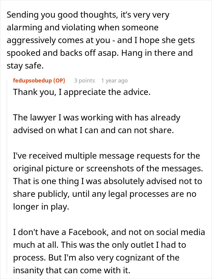 “This person is certainly not stable,” the woman pointed out when replying to commenters