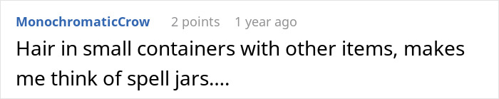 This woman was weirded out by hers when she discovered they’d been keeping her cut hair in containers