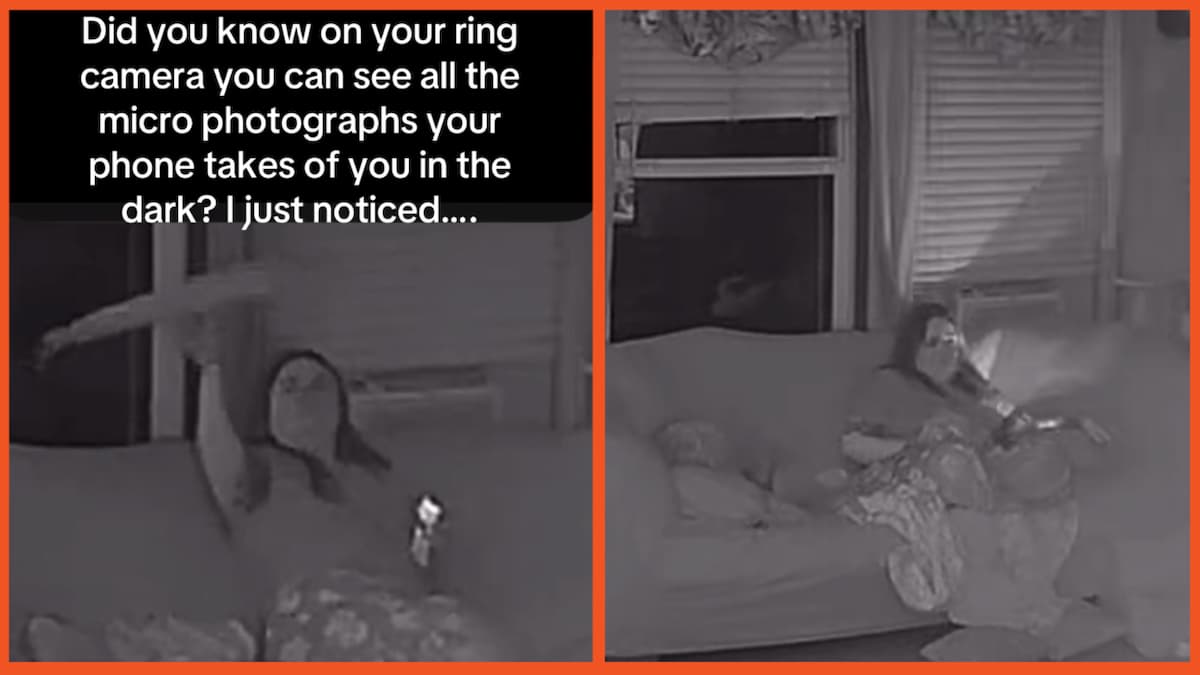 TikToker “@lynzifer0” shared footage from her living room Ring camera which shows her chilling while on her phone. The camera seems able to pick up light which is invisible to the naked eye and it picks up something very interesting about the woman’s phone. As she sits there, spinning something known as a “Flow star,” intermittent flashes can be seen coming from the phone she’s holding in the other hand.