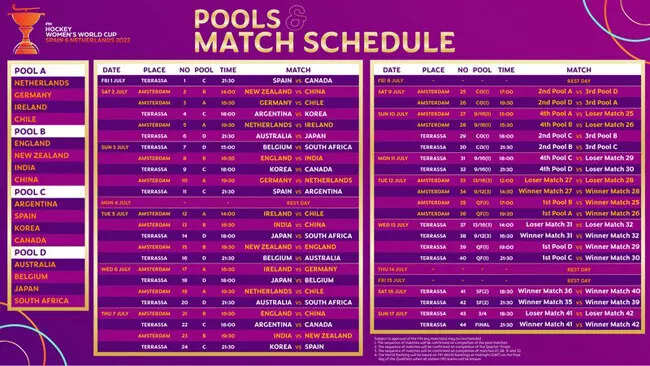 FIH WOMEN'S WORLD CUP DATES: July 1 to 17