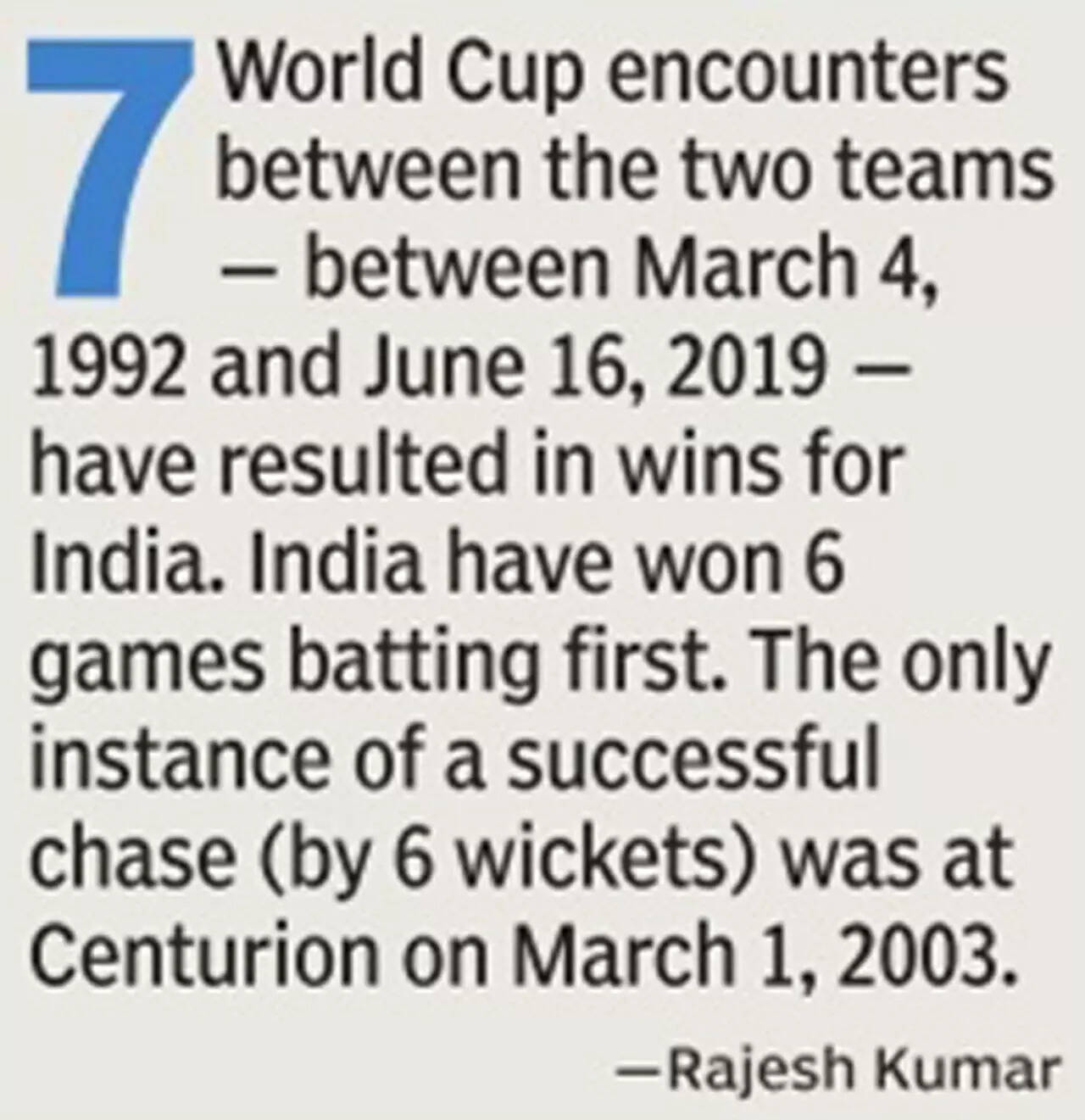 Even though Pakistan have won both their matches coming into this clash, Babar would personally have been happier with more runs in the bank, having been dismissed for five against the Netherlands & 10 against Sri Lanka in Hyderabad, in the World Cup so far. "My World Cup till now hasn't been as it should have been, but hopefully, you will see some difference in the next matches," he said.
