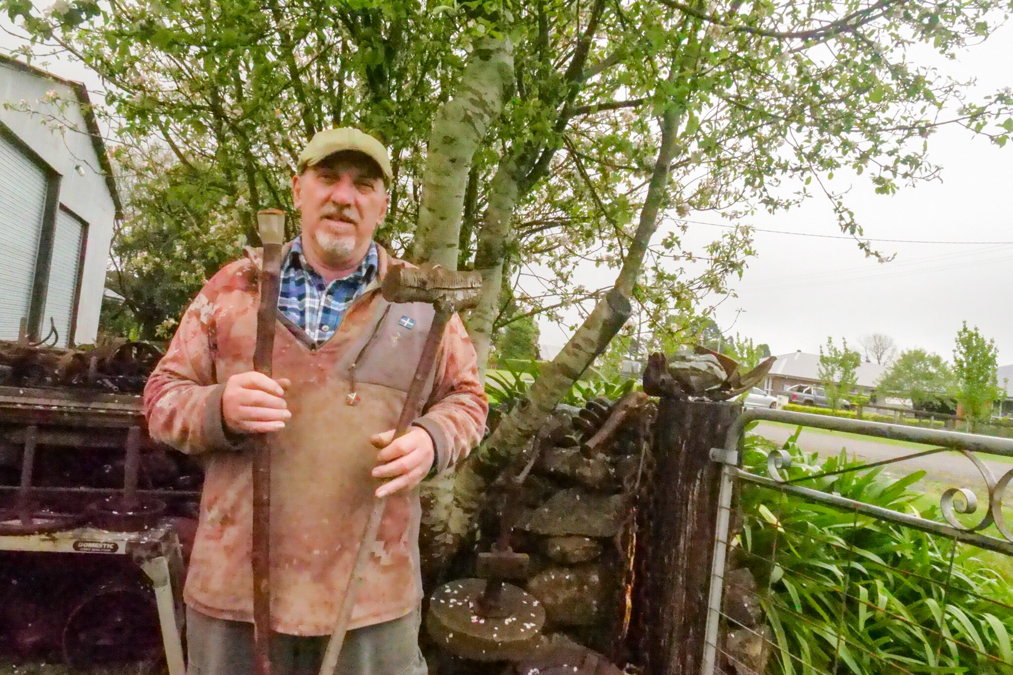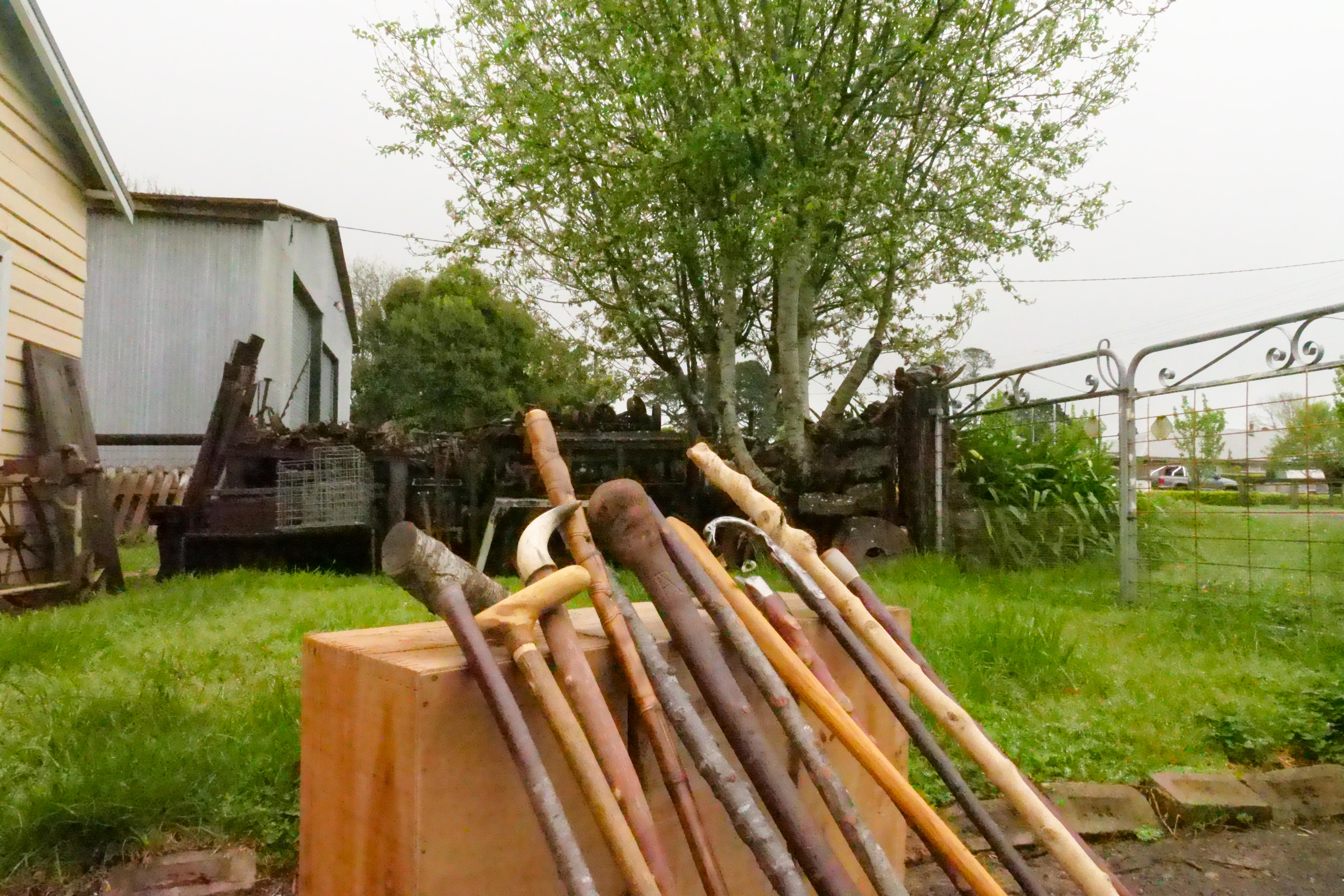 After storing them in his woodshed for 12 months, the split and cracked branches are turned into kindling while the others are turned into walking sticks.