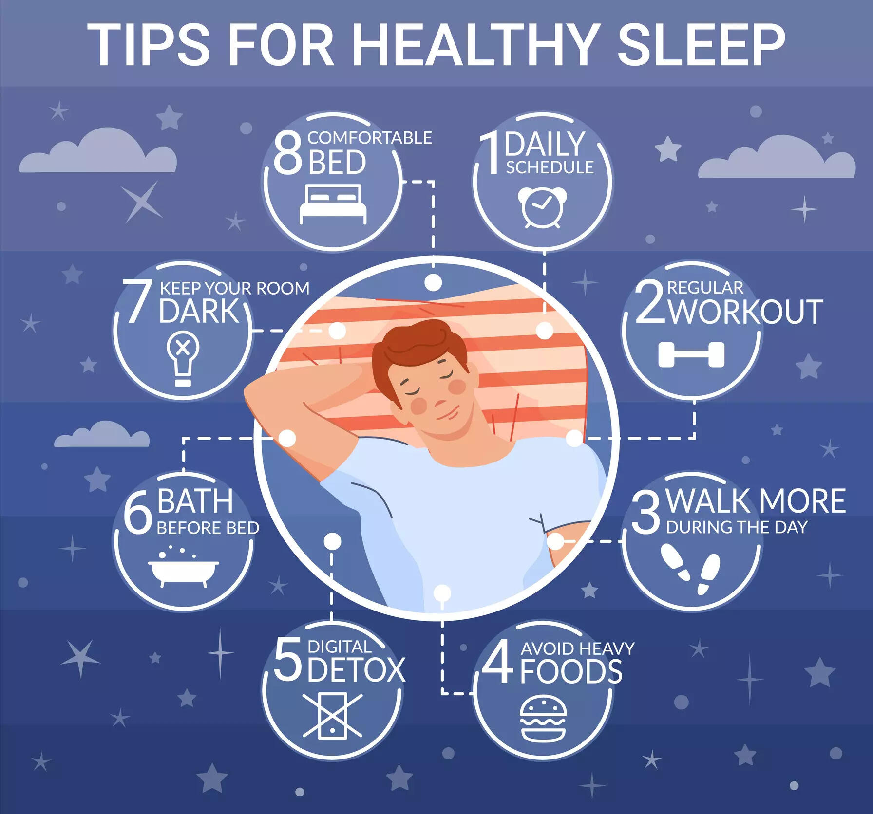 Maintaining a fixed sleep schedule Reducing screen time before bed Keeping the room dark and cool for better sleep quality