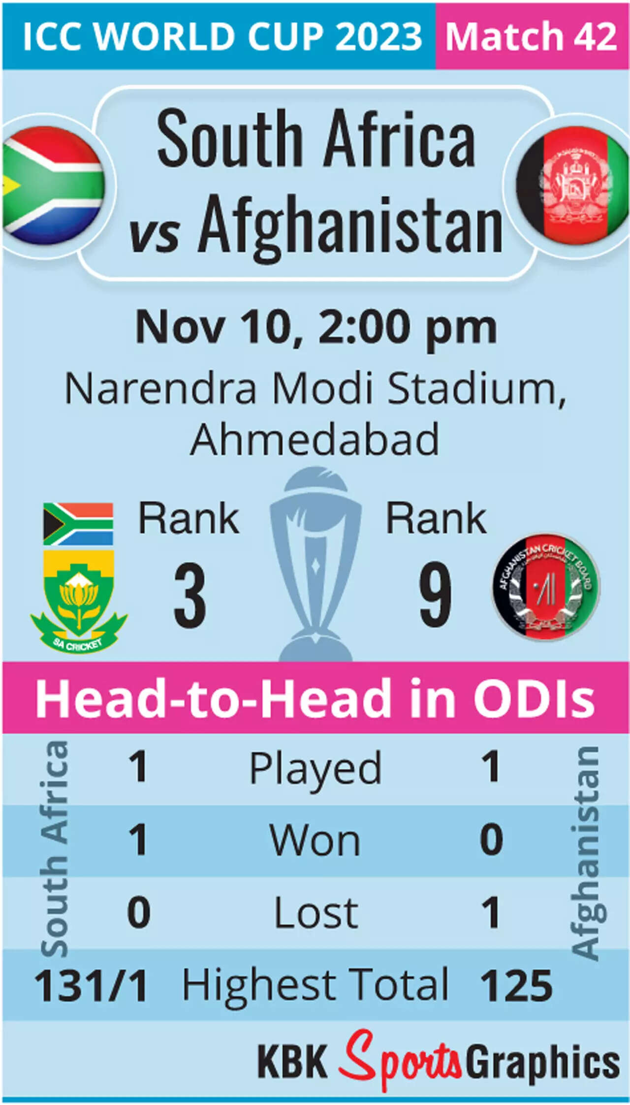 NEW DELHI: Afghanistan captain Hashmatullah Shahidi won the toss and chose to bat against South Africa in the 42nd match of the ICC Cricket World Cup 2023 at the Narendra Modi Stadium in Ahmedabad on Friday.