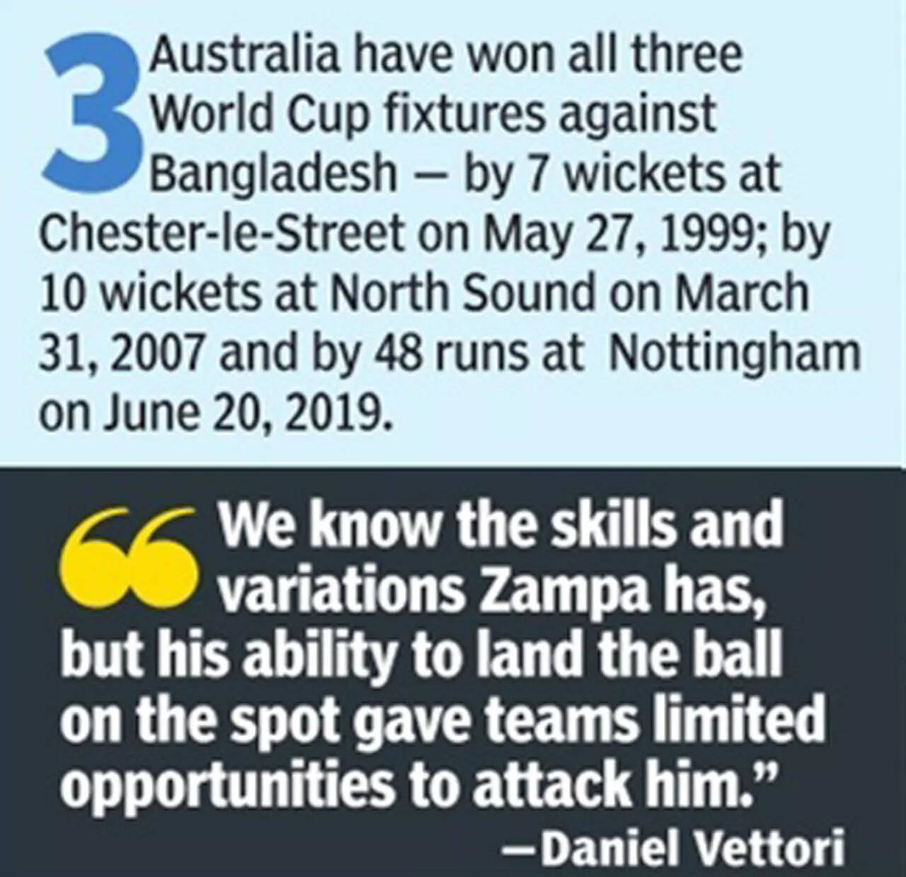 Bangladesh are expected to find extra motivation against the Aussies. The latter had cancelled hosting Bangladesh due to financial viability in 2018 and have avoided playing them in bilateral series. They also have a bowling coach in Allan Donald who would like to end his stint on a high. The former South Africa speedster won't be short on thirst for Aussie blood.