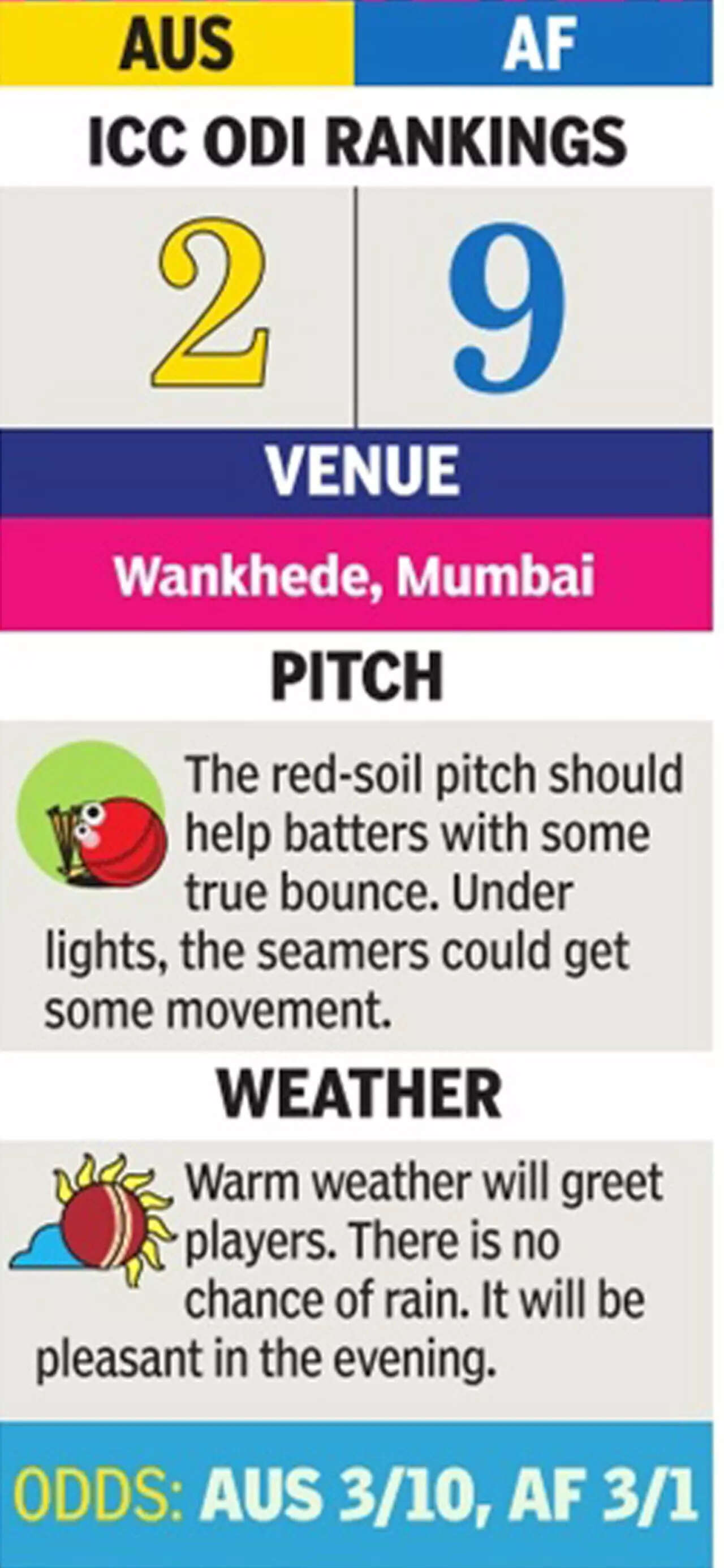 Australia know the threat they can be, so, most of their focus, or the talk, on the eve of their clash was centred around Afghan spinners. Most of the bowlers they faced in the nets were either leg-spinners, left-arm chinaman and off-spinners.