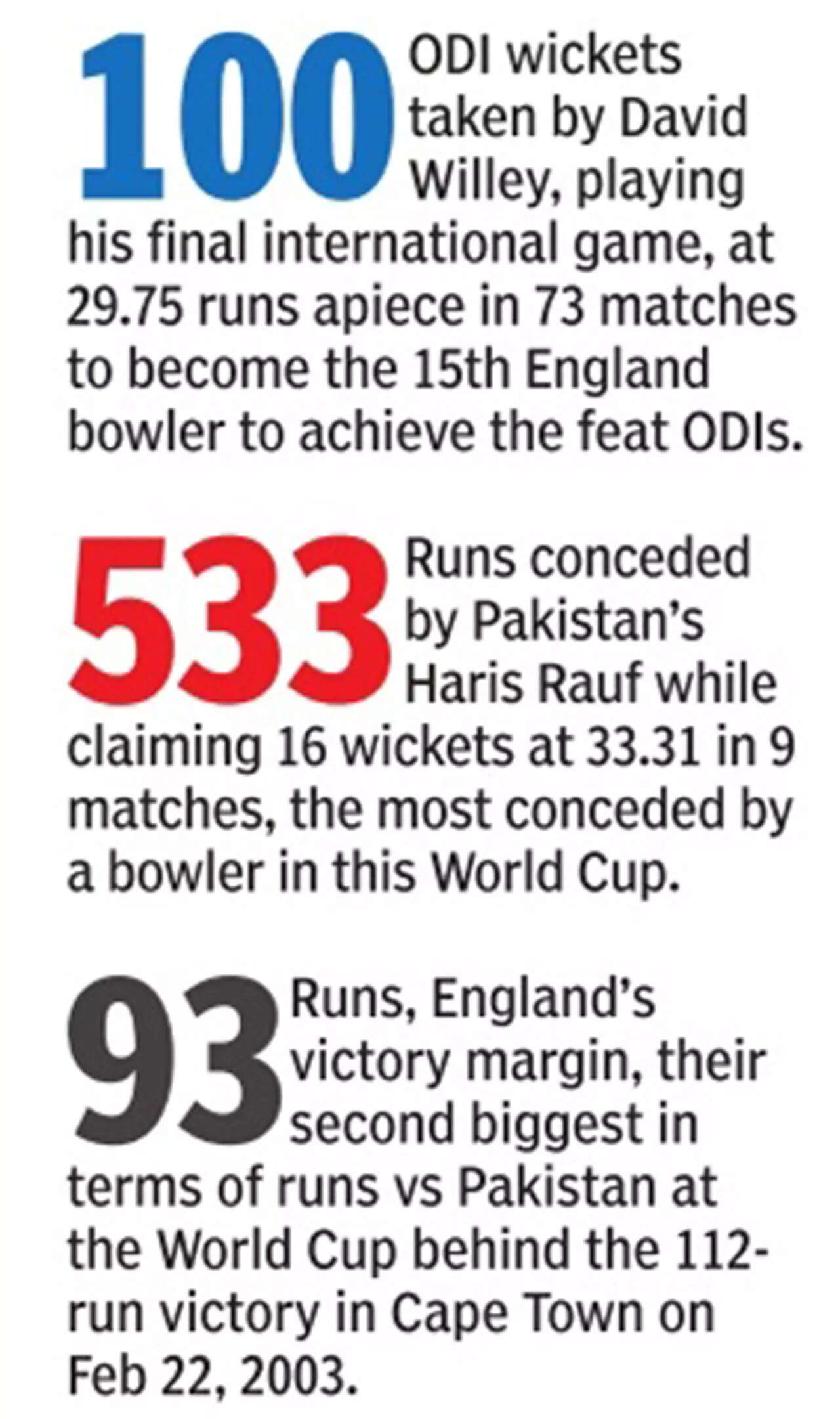 There was hardly any urgency in Pakistan's chase, which was derailed inside three overs with the openers back in pavilion, the team score reading 10. A vintage Babar displayed an array of shots in his brief stay of 38. Agha Salman was, however, their best batter, scoring 51. Haris Rauf's 23-ball 35 and 53-run 11th wicket stand with Mohammad Wasim was sheer frustration for England.