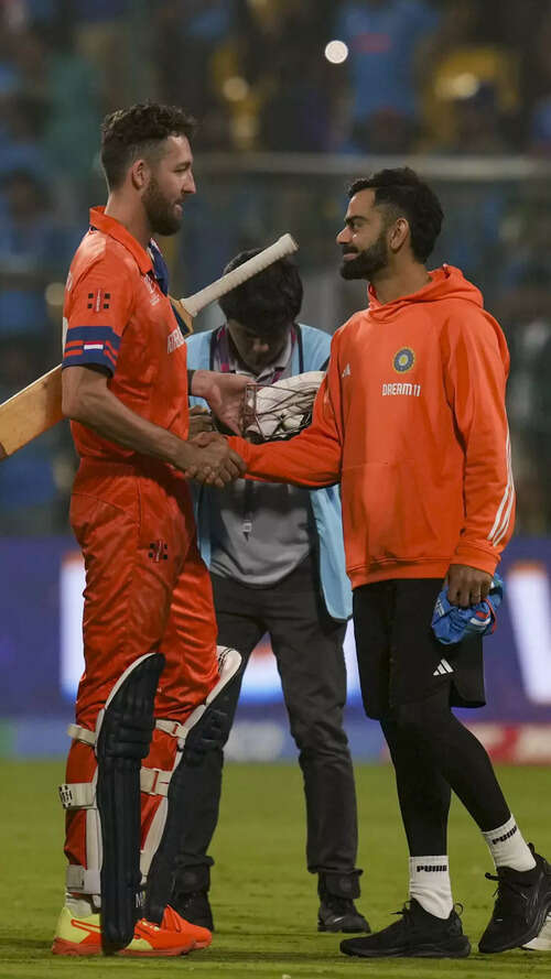 <p>Virat Kohli dismissed Netherlands captain Scott Edwards for his first ODI wicket since 2014 and his first scalp in the World Cup. </p>TNN