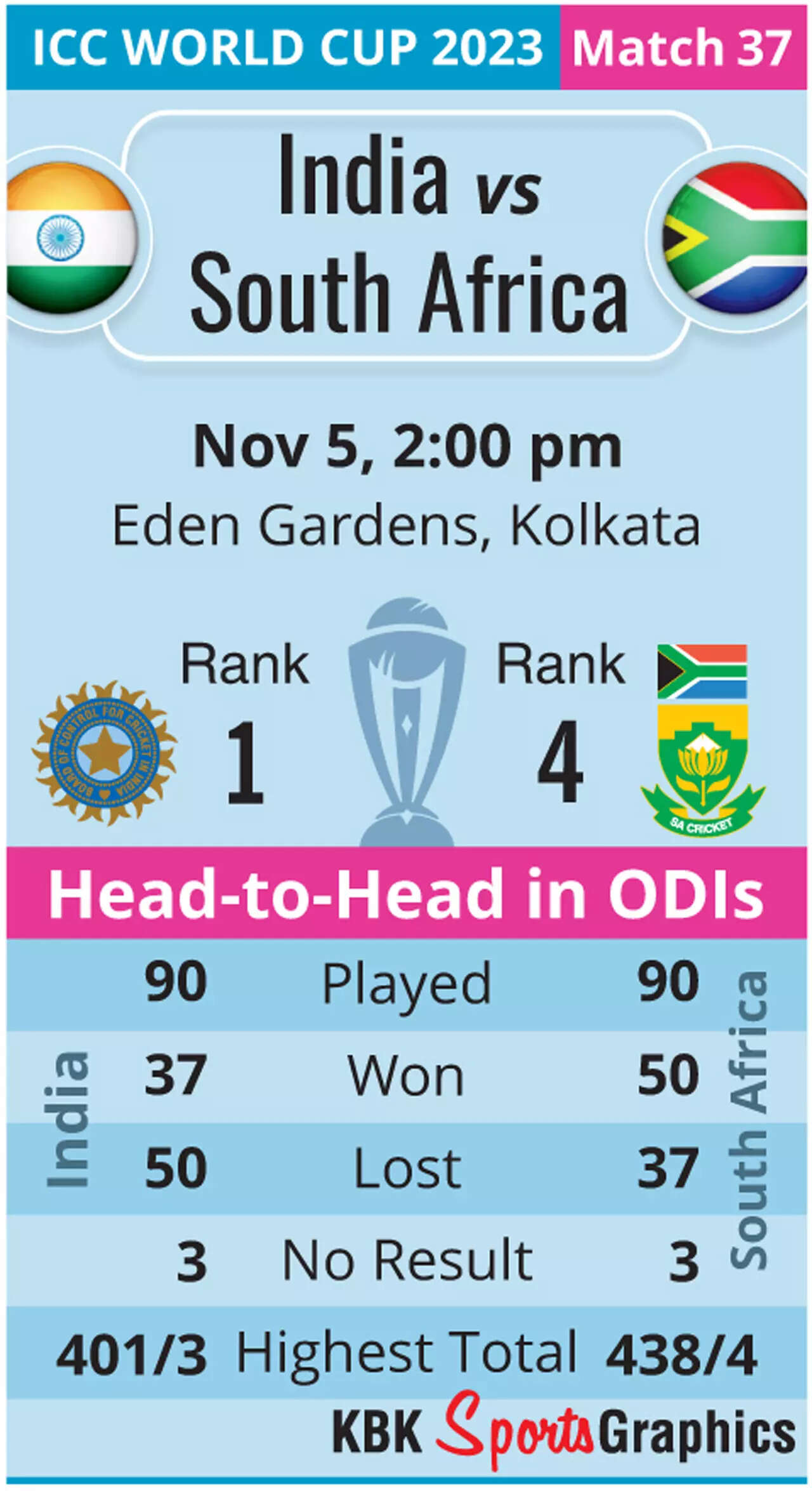 NEW DELHI: India captain Rohit Sharma won the toss and chose to bat against South Africa in the 37th match of the ICC Cricket World Cup 2023 at the Eden Gardens in Kolkata on Sunday.