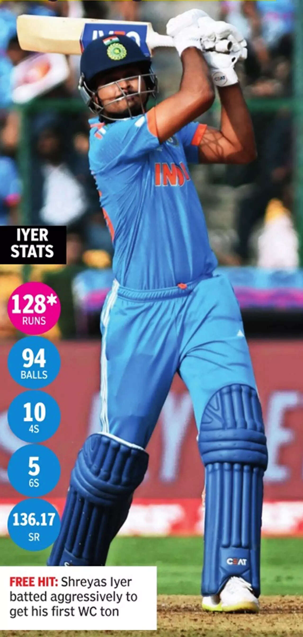 Shreyas Iyer scored his first century in a World Cup match - 128 not out off 94 balls.AFP8/10:Rahul's fastest Indian hundred