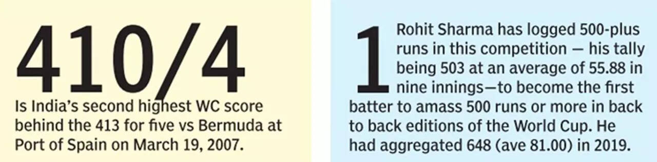 BENGALURU: The throbbing, surging, cheering sea of blue at the M Chinnaswamy stadium was broken only by a speck of orange, which was bright and bold. Rohit Sharma & Co celebrated Deepavali much like they started their league engagements in this World Cup - with a bang.
