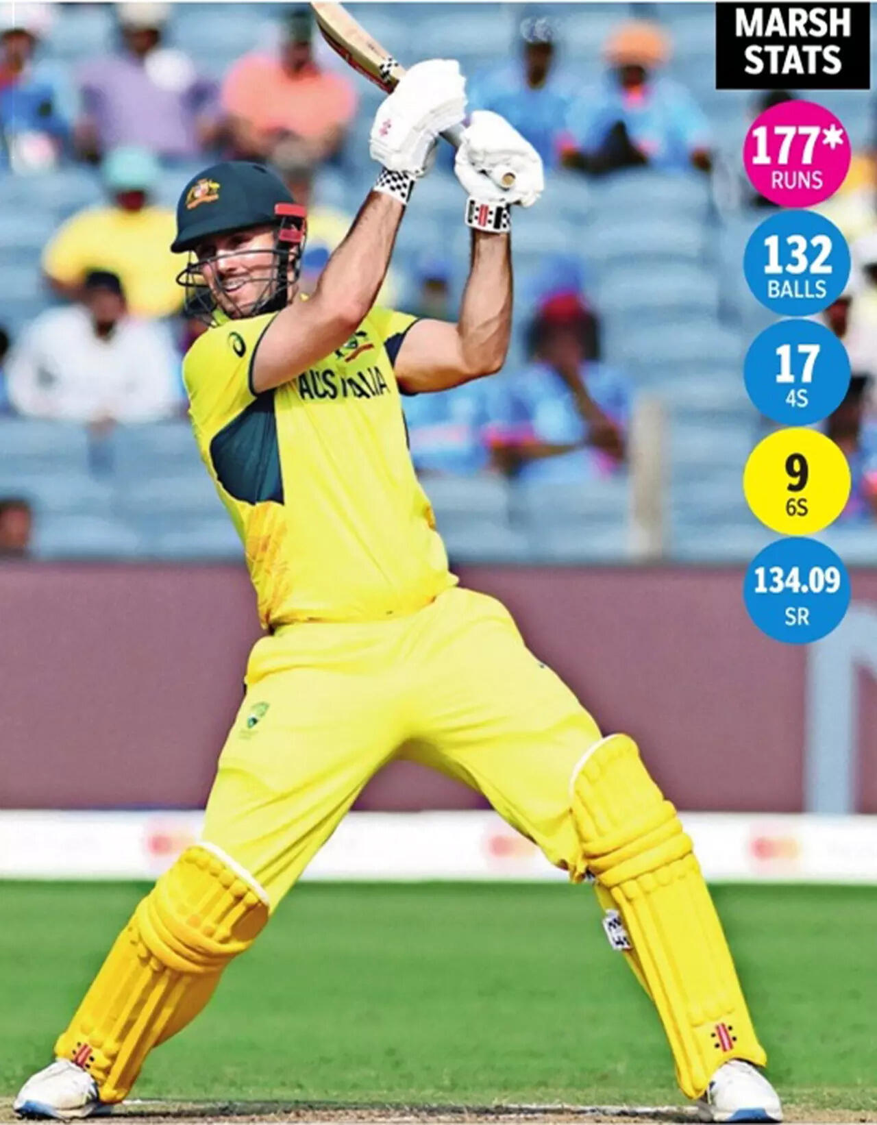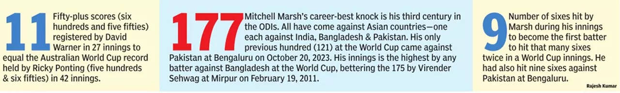 Mitchell Marsh extended Glenn Maxwell's onslaught against Bangladesh in front of 19,000 people at Gahunje on Saturday with an exhibition of clean hitting. On a day when the rain stayed away, he blasted 177 off 132 balls, featuring 17 fours and nine sixes. The expansive arc between deep extra cover and deep square leg was utilized for an all-out attack, in which the aerial route was taken frequently. However, it was not mindless gambling; he was largely in full control of his shots.