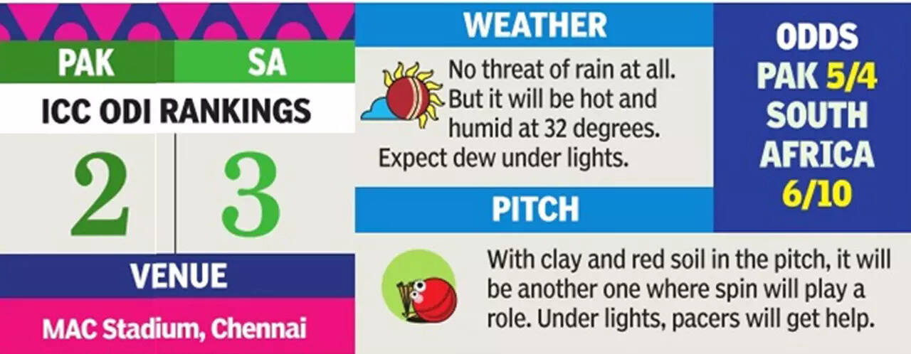 The explosive South African top-order has been superb so far in the World Cup while the pace and spin attacks have looked the part. The only concern for South Africa could be chasing a big total - they lost to Netherlands in Lucknow - on a Chepauk track where the ball can stop a bit in the evening session.