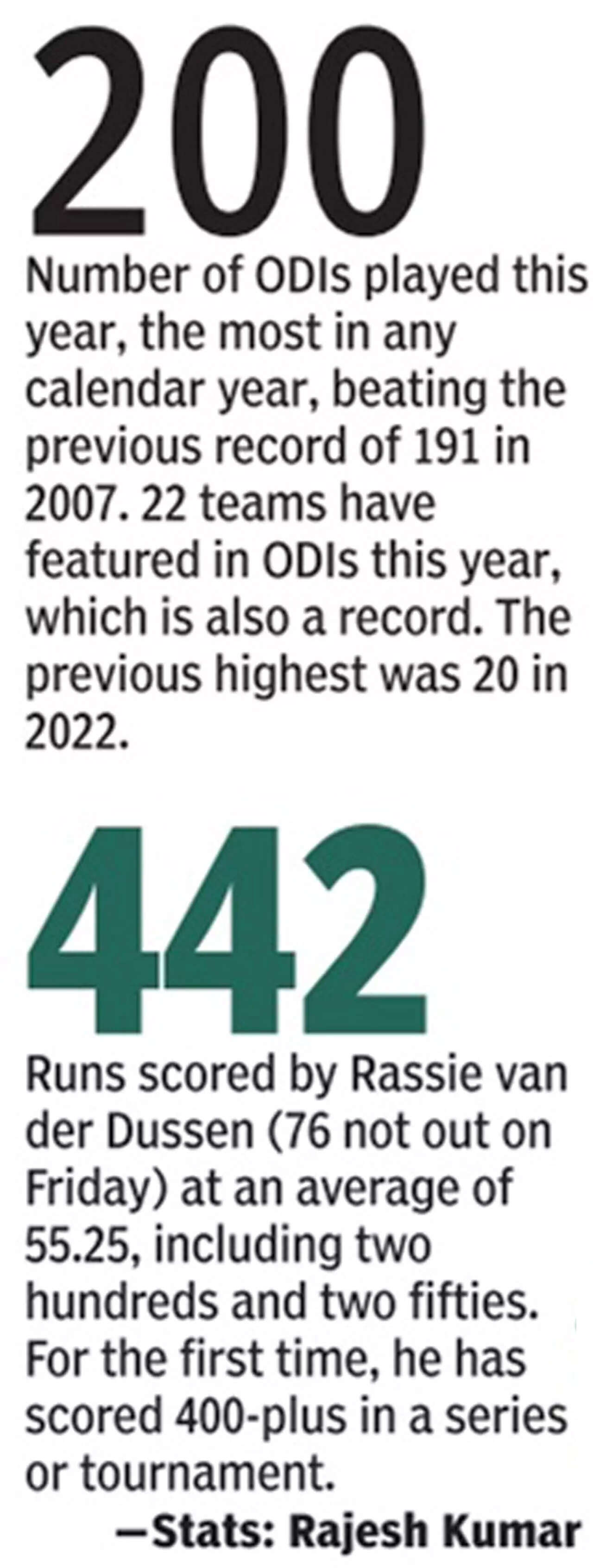 AHMEDABAD: If South Africa were looking to correct an anomaly in their current World Cup campaign, the contest against Afghanistan at the Narendra Modi Stadium in Ahmedabad on Friday allowed them to tick an important box: ace a chase. At 182-5 after 37.1 overs in pursuit of 245, South Africa seemed to be in a familiar spot of bother. This was followed by 45 boundary-less balls. The perennial ghosts of chasing were hanging like a sword over their head. With allrounder Andile Phehlukwayo struggling for timing and unable to rotate the strike regularly along with Rassie van der Dussen, it seemed like they had bottled up another run chase.