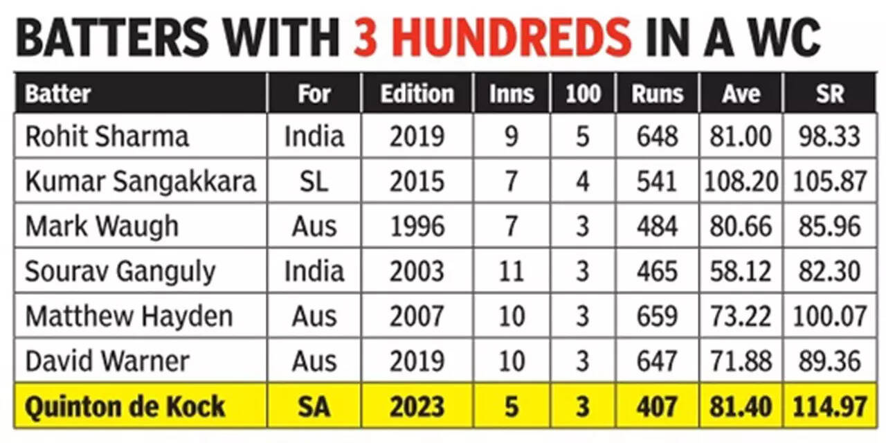 But de Kock (174, 140b; 15x4, 7x6) and Markram's (60, 69b; 7x4) nerve settling partnership before Heinrich Klaasen (90, 49b; 2x4, 8x6) and David Miller's (34, 15b; 1x4, 4x6) pyrotechnics in the death overs made sure that the batting first option was indeed the right one and it brought them their eighth 300 plus total while doing so - fourth in this World Cup itself.