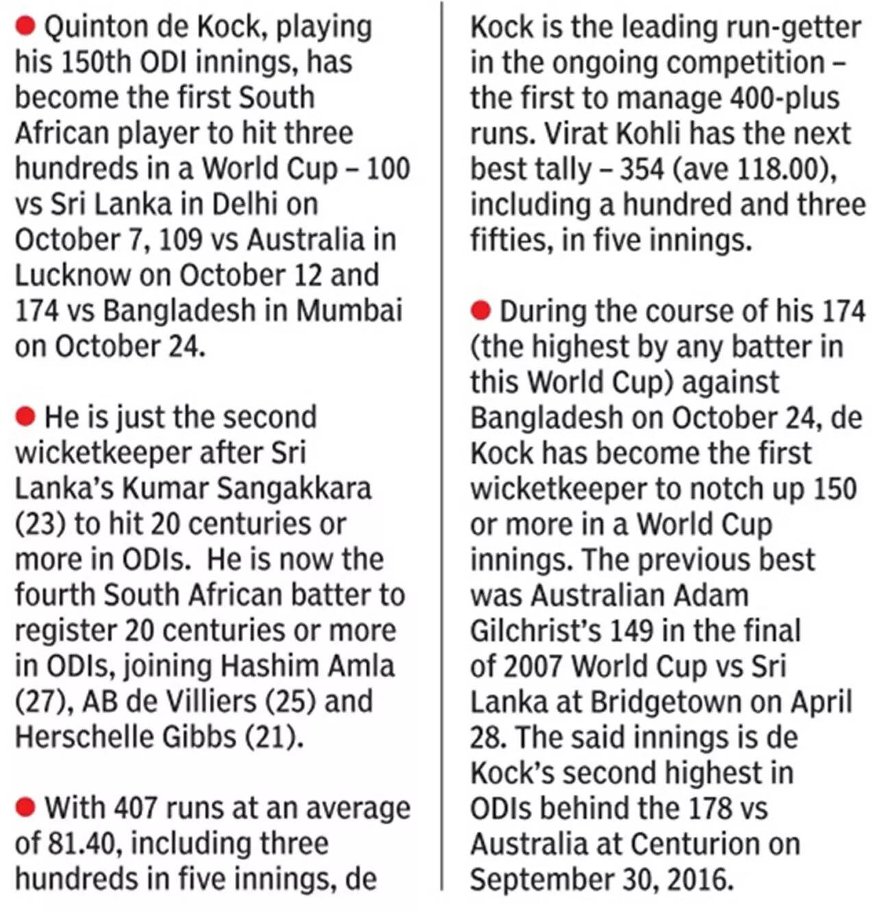World Cup: Ton-up Quinton de Kock leads South Africa's rout of Bangladesh