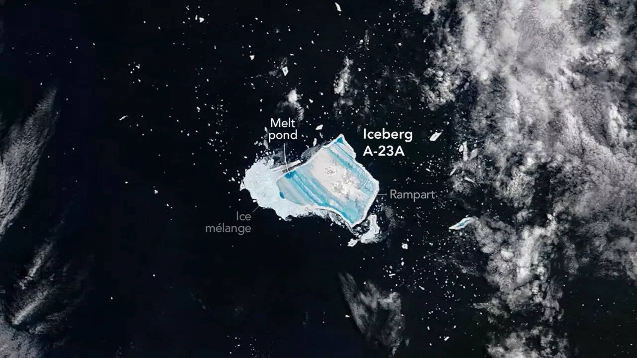 The largest iceberg, A23a, weighing almost a trillion tonnes, once broke away from Antarctica’s Filchner-Ronne Ice Shelf back in 1986. But for a long time, it didn't move because it was stuck to the ocean floor in the Weddell Sea. When Iceberg A23a calved from the Filchner Ice Shelf in 1986, it took the Druzhnaya 1 research station along with it. The station had been a seasonal field camp used by Soviet scientists since 1975 for topographic and geodetic mapping. Now, it has finally started breaking apart into the warmer water of the Atlantic Ocean in 2020. And scientists from NASA and BAS have noticed that this iceberg is now rapidly breaking apart.