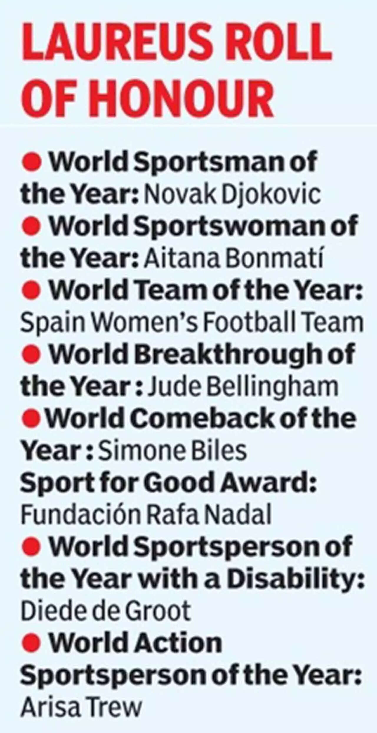 Novak Djokovic, Aitana Bonmati, Jude Bellingham and Simone Biles were among the big winners in Madrid on Monday night in the 2024 Laureus World Sports Awards.