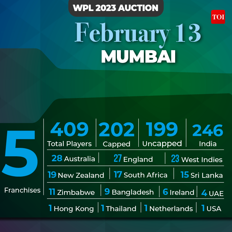 The five teams -- Mumbai Indians, Delhi Capitals, RCB, Gujarat Giants and UP Warriorz -- will be bidding for 90 players in a list of 409.