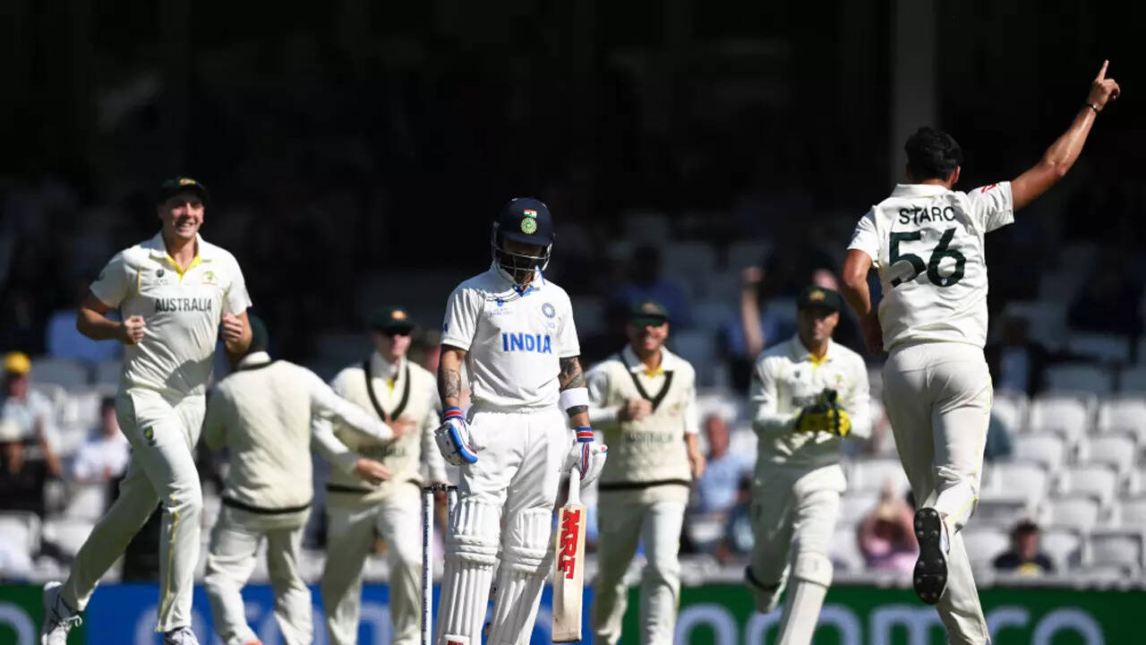<p>Virat Kohli was undone by a spiteful, lifting ball from Mitchell Starc that took the shoulder of the bat, with Smith holding an excellent leaping catch above his head at second slip.</p>ReutersCheteshwar Pujara realized the gulf in quality of attacks he milked in County second division and this Australian pack. He fell in identical fashion to Cameron Green with his front foot going nowhere and letting the ball go to see his stumps shattered.