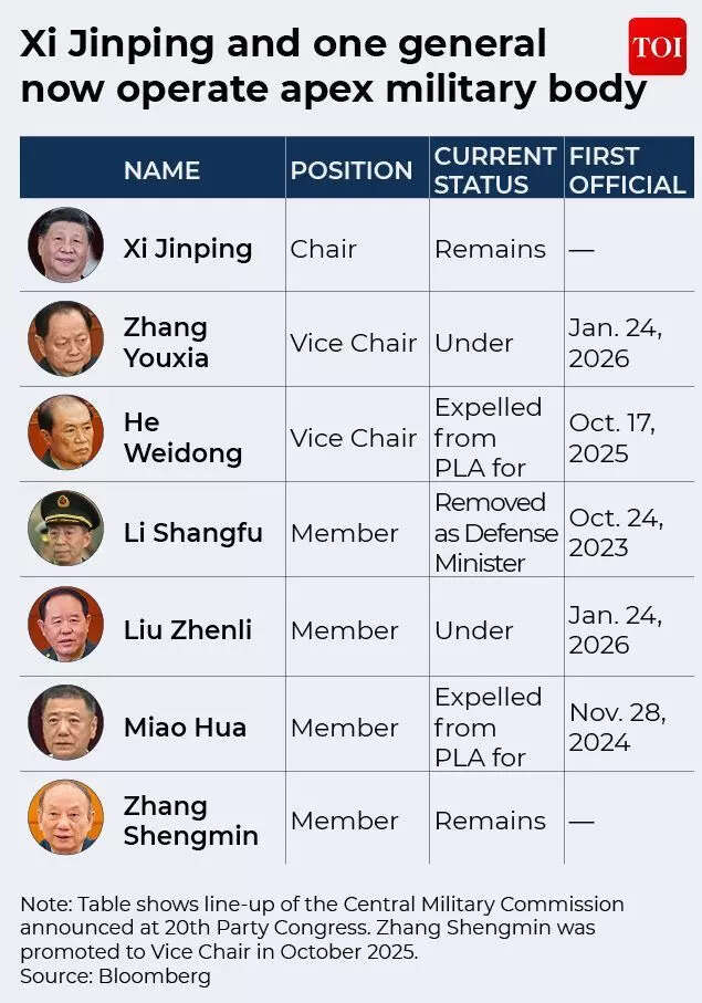 According to a WSJ report, Gen Zhang Youxia is accused of leaking information about China's nuclear weapons programmes to the US. He is also accused of taking bribes for promotions.