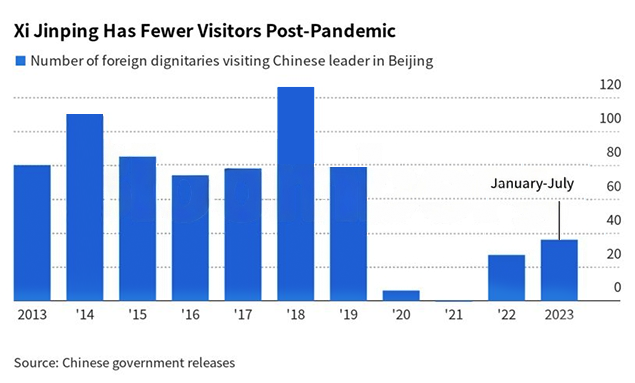 Now, Xi is making foreign dignitaries come to him. He’s met representatives from 36 nations including France, Eritrea and the US in Beijing so far this year. Before the pandemic, Xi hosted an average of 48 dignitaries annually in the same period, meaning his overall in-person dialogue is in decline.