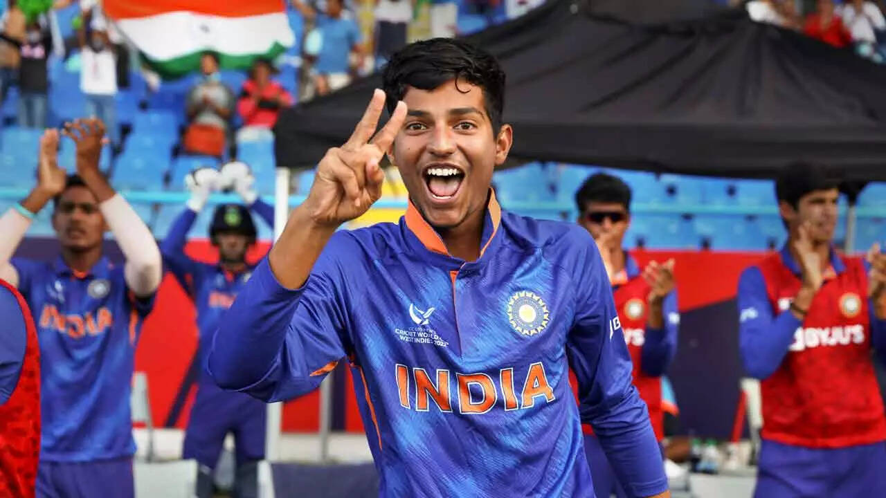 The team of the ICC U19 Men's Cricket World Cup 2022 (in batting order): Haseebullah Khan (wk, Pakistan), Teague Wyllie (Australia), Dewald Brevis (South Africa), Yash Dhull (Captain, India), Tom Prest (England), Dunith Wellalage (Sri Lanka), Raj Bawa (India), Vicky Ostwal (India), Ripon Mondol (Bangladesh) Awais Ali (Pakistan), Josh Boyden (England), Noor Ahmad (Afghanistan)
