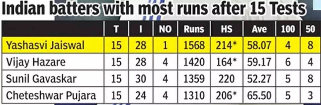 How does that make those who played a part in Jaiswal's meteoric rise feel? Former India captain Dilip Vengsarkar, for one, has no doubt Jaiswal is the next breakout batting star of Indian cricket. Vengsarkar has played a key role in Jaiswal's career, taking him to England for an exposure trip with his academy in 2015, when the batter was in his early teens.