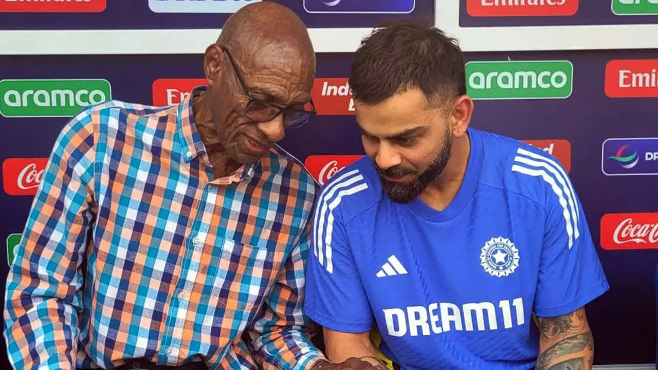 NEW DELHI: Virat Kohli, India's star batsman, recently met legendary West Indies fast bowler Wesley Hall during a practice session ahead of India's Super 8 clash against Afghanistan.