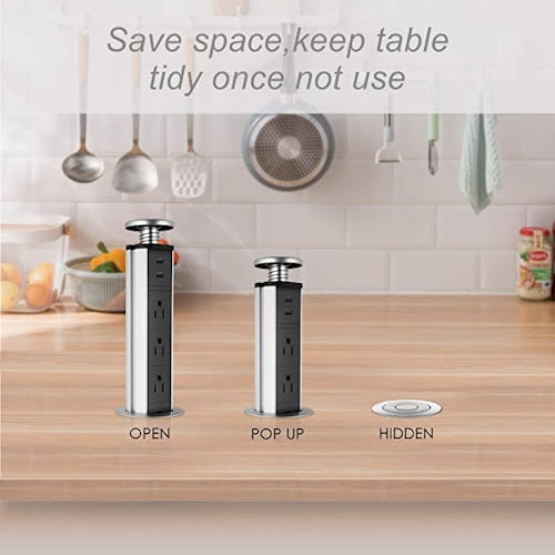 If your kitchen could use a few extra outlets, this retractable power strip is a must-have. It stays hidden until you need it, and can be pulled up using the pop-up handle. And unlike some power strips, this one features two USB ports — just in case your phone is running out of battery.