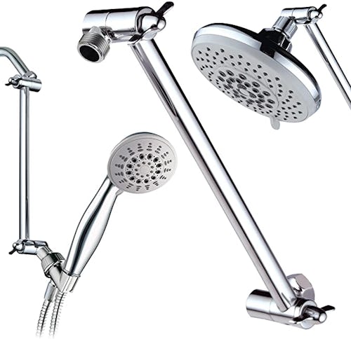 With 2 feet of vertical movement range, you can easily angle this showerhead however you like. It also comes with a detachable handheld sprayer — and installation is incredibly simple, as no tools are necessary. Plus, the chrome finish makes it look way more expensive than it is.