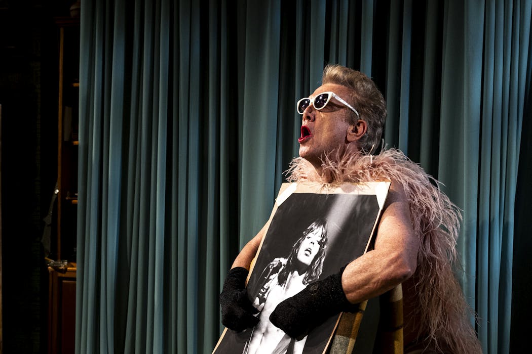 Burke takes us through the full gamut of this material. He starts with a gyrating seduction of Mick Jagger in poster form. He flips at the ring of his phone, placing a posh English accent on top of his Aussie drawl. He moves from high camp to poignant, with gestures and chuckles that become familiar, bringing us close to the character, a portrait painted with depth and pathos.