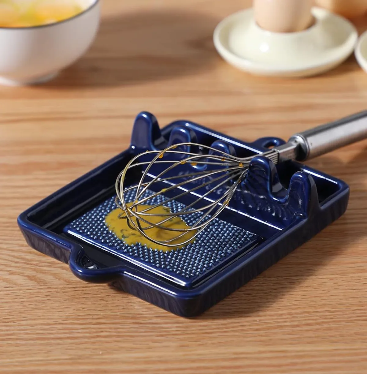 This spoon rest has a brilliant design that goes beyond just keeping your countertops mess-free. It features a wide, flat surface with slots to keep utensils in place, a textured area for grating ginger and garlic, plus a spout for pouring and draining liquids. And it’s crafted from porcelain that’s durable and dishwasher safe.