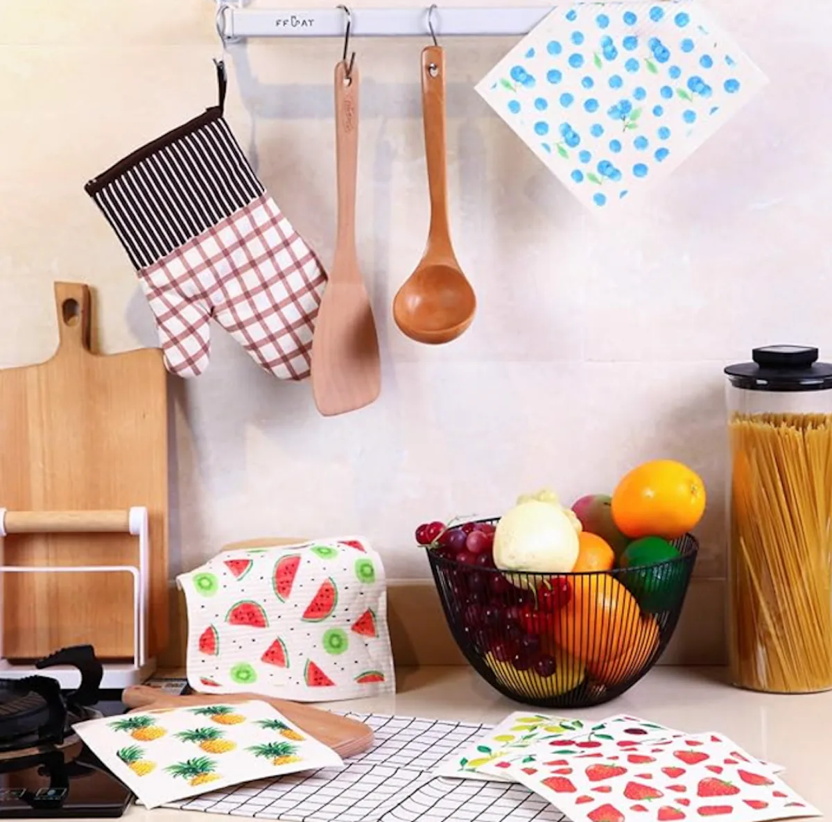 Swap out expensive paper towels for these ultra-absorbent dish cloths. The highly rated set is made from a durable cotton fiber blend that’s biodegradable, lint-free, and reusable (just pop in a wash cycle). The pack of six features charming fruit patterns, including strawberries, pineapples, and watermelons.