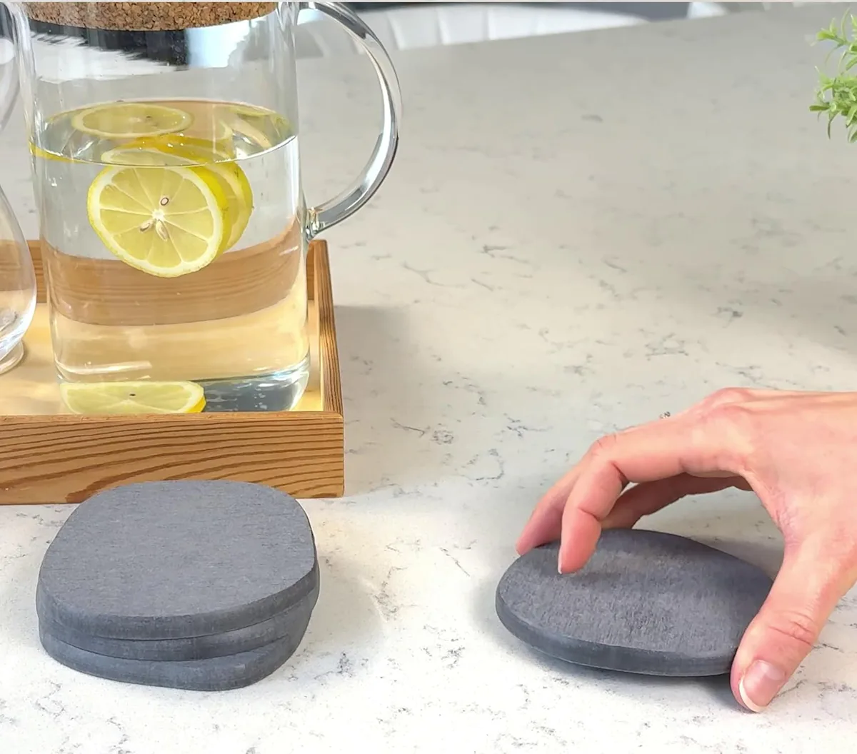 “These stone coasters soak up moisture right before your eyes. Plus, the organic shape gives them an elevated vibe.” — Kate Miller
