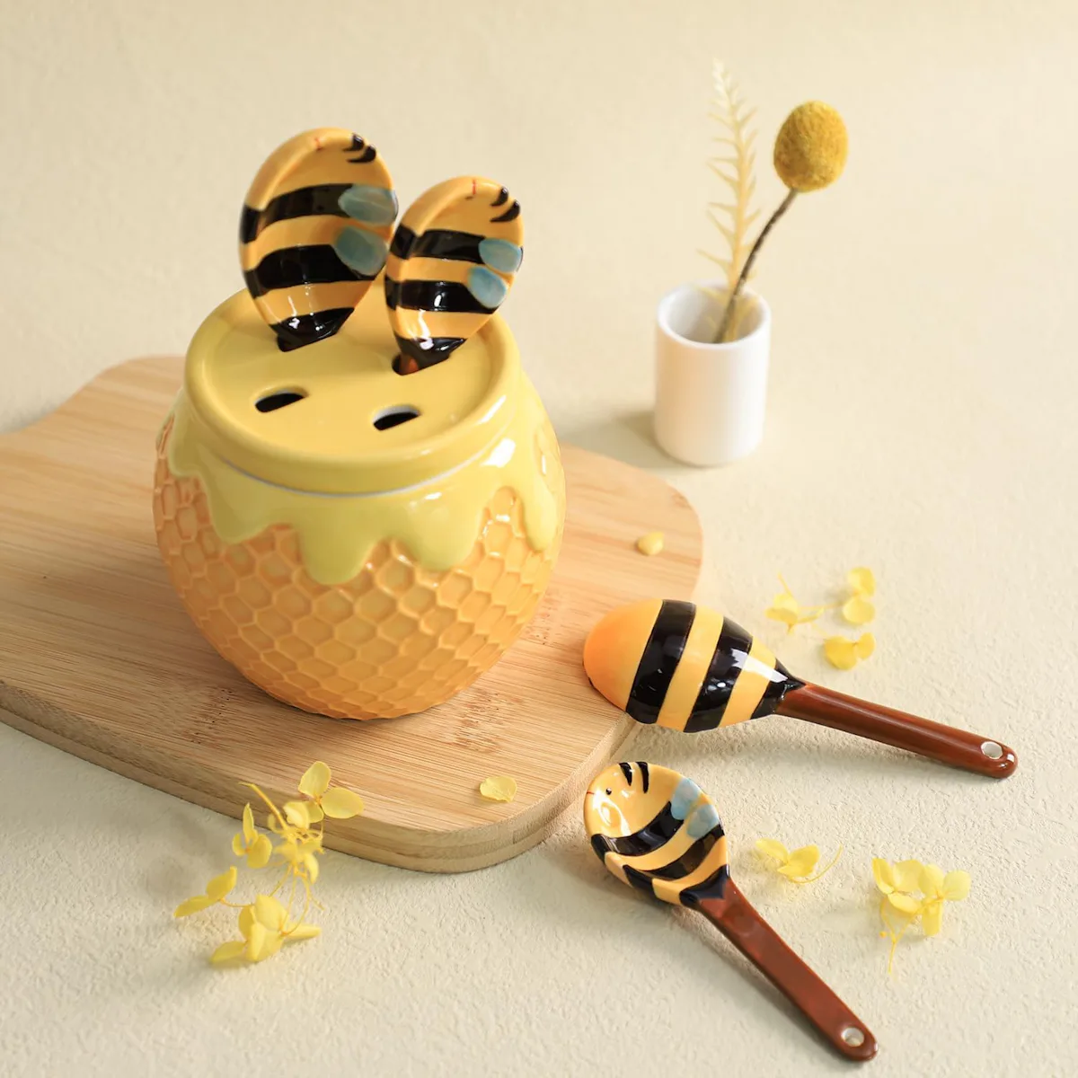 This measuring spoon set is so cute that you’ll want to keep it displayed even when you’re not baking. It features a honeycomb pot with a slotted lid for storing the four bee-themed measuring spoons. Each piece is crafted from porcelain and has stunning hand-painted details.