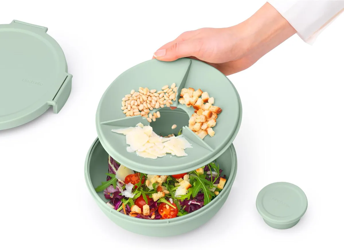 If you’re obsessed with packing salads and grain bowls for your work lunches, you’ll be equally obsessed with this food storage container that keeps ingredients separated to prevent soggy meals. This portable salad bowl features a large compartment for greens, plus a divided nesting tray for toppings, and a leakproof container for dressings.