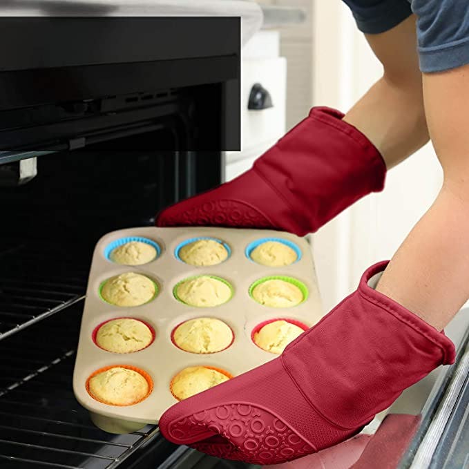 One reviewer said: “I love these oven mitts! They actually fit my large hands unlike others and have amazing grip! When holding items, I can’t feel any heat as these are heat resistant.”