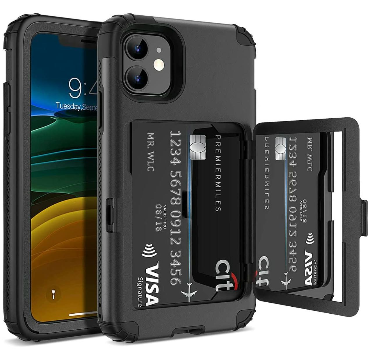 Cover your iPhone with this clever, heavy-duty wallet case and it will make that device even more useful than it already is. There is a compartment on the back that holds a credit card and has a hidden mirror under the flap. And when you want your phone to stand up, just open its lid and it acts as a kickstand.