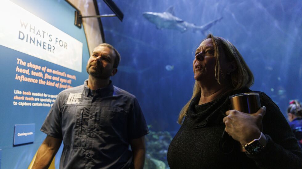 On Monday she swam through the waters of the Shedd’s Wild Reef Shark Habitat, unsurprisingly oblivious to the loss of her two babies or the news conference taking place on the other side of her glass enclosure.